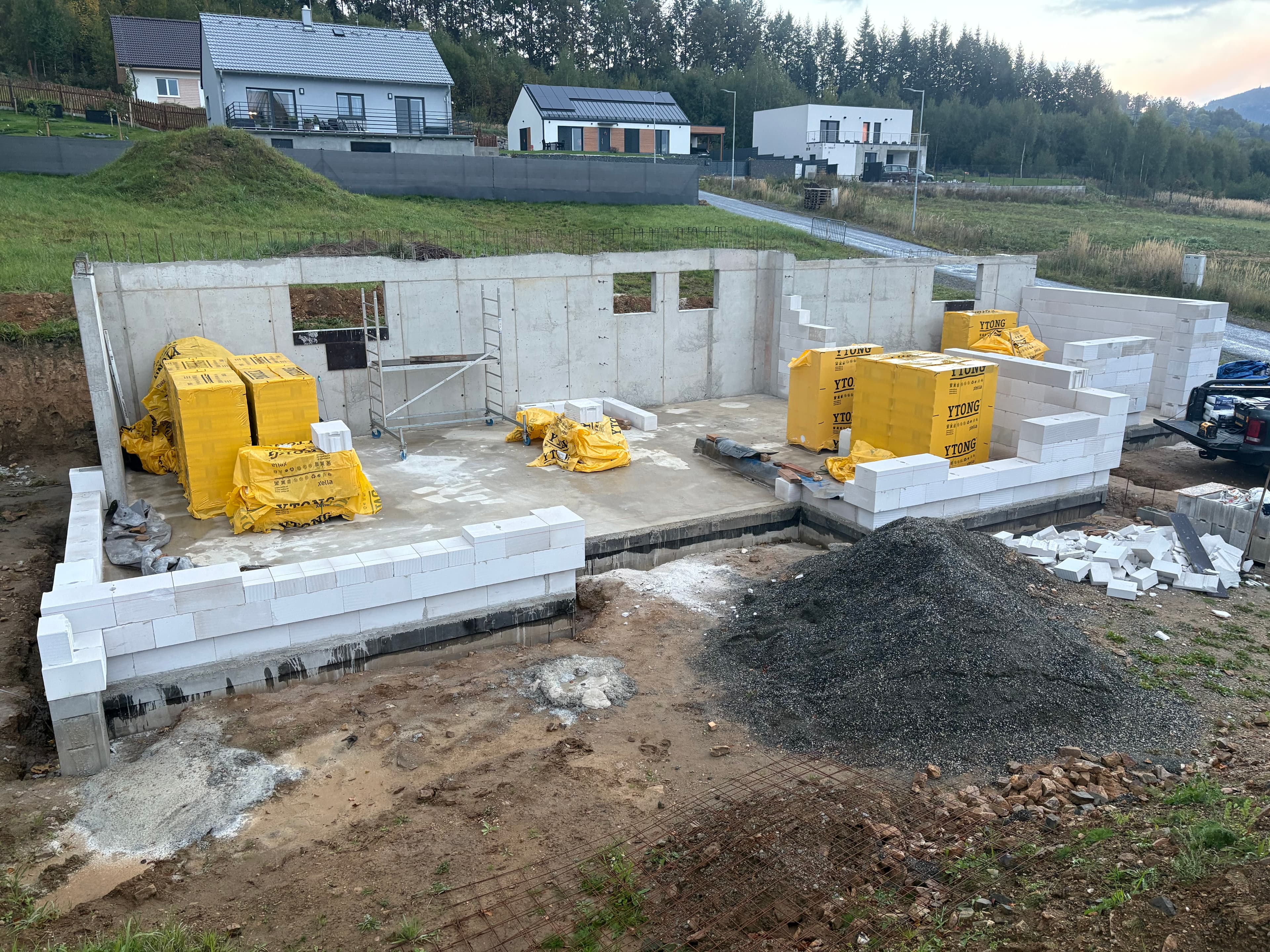 - nosné stěny v přízemí jsou navrženy jako kombinace zděných a monolitických železobetonových s dodatečným zateplením, příčky navrženy jako zděné